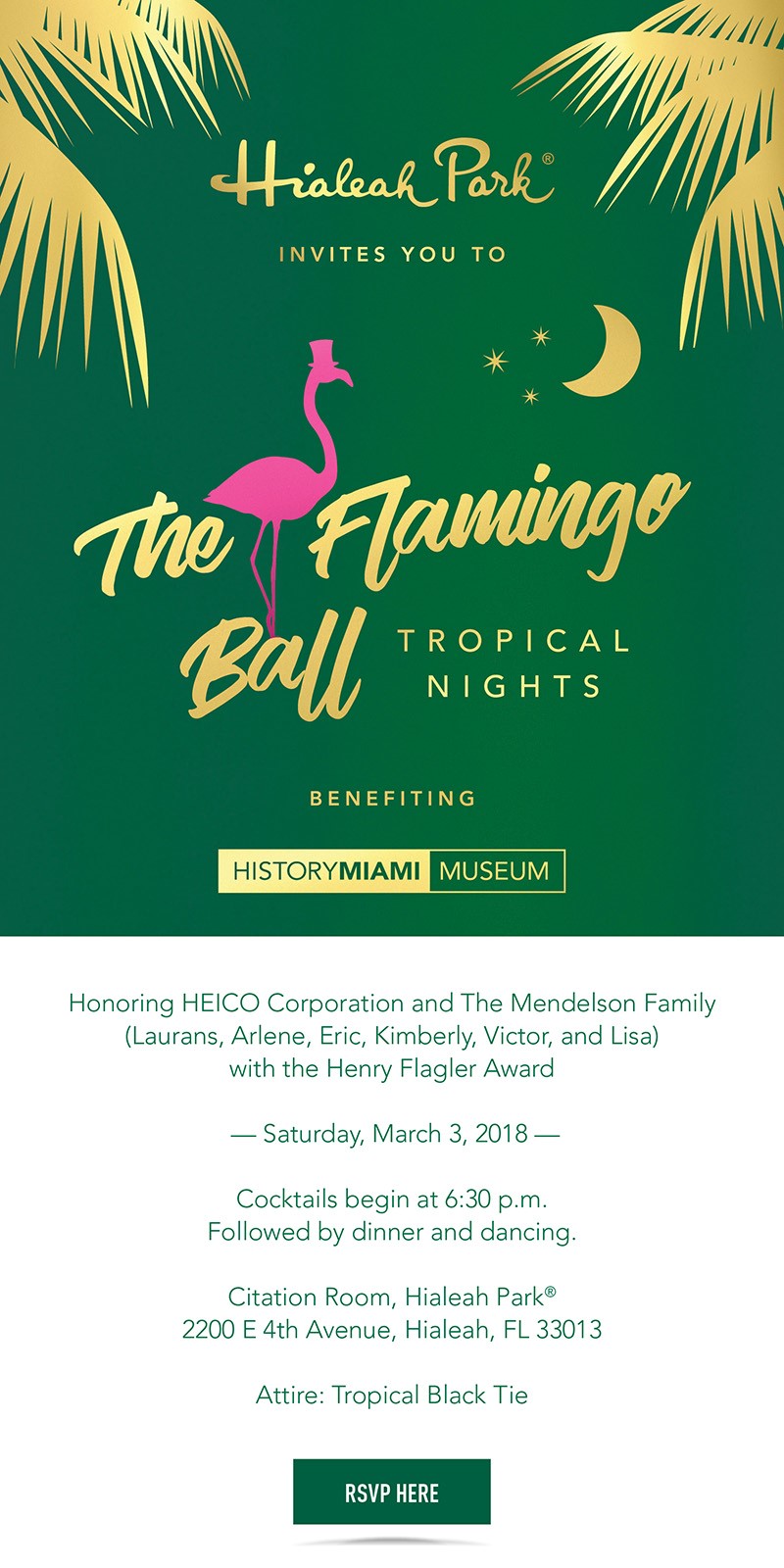 HistoryMiami Museum will transform Hialeah Park into a tropical oasis, with its second annual Flamingo Ball on Saturday, March 3 , 2018. The theme for this year’s gala is ‘Tropical Nights.' The Flamingo Ball, named after the beautiful birds that inhabit Hialeah Park’s infield lake, was first held in 1965 on the eve of the Flamingo Stakes horse race at the racetrack. The lavish pink social confection returned last year to a sold out crowd of the city’s most philanthropic…