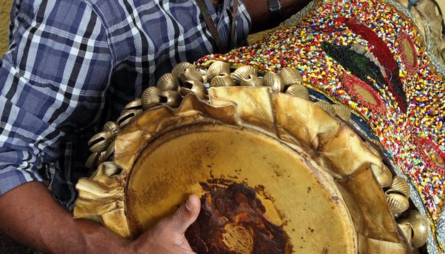Before new drums can be used at important ceremonies, they must be consecrated. During this ritual, priests invest them with a spiritual force and give them a name and a voice. Consecrated drums may only be played by members of a special spiritual fraternity.