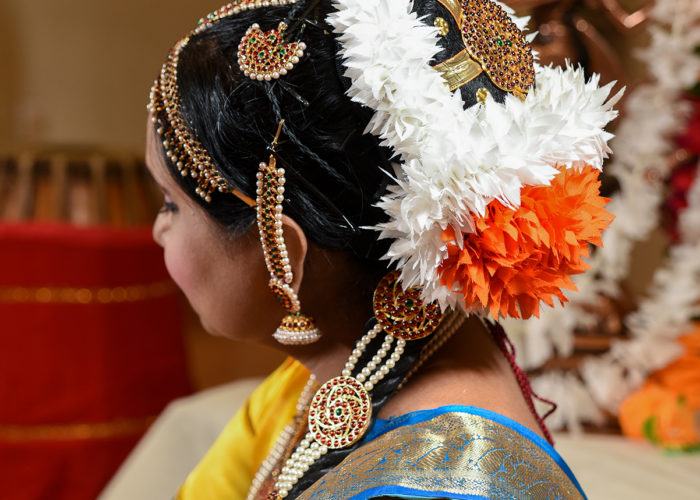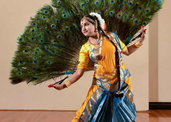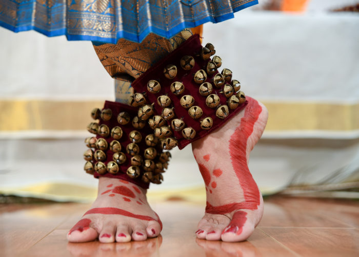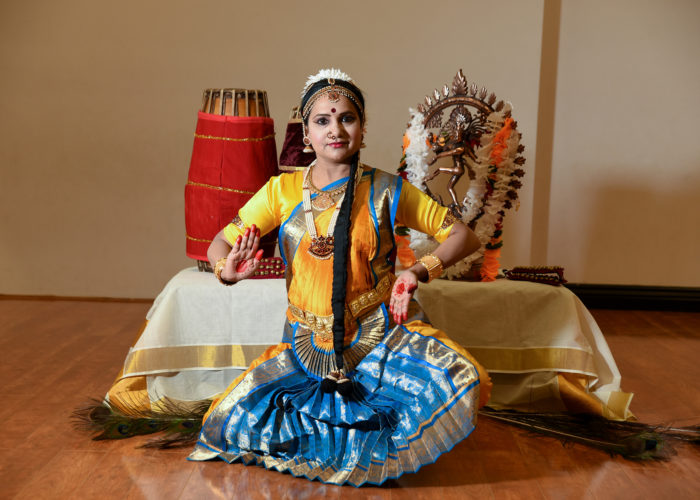 The rhythmic sound of the ghungroo or salangai (the ankle bells worn by dancers) is engrained in my brain since childhood. Growing up in an art-loving family, I remember waking up in the morning hearing the Indian classical and folk music from the radio almost every day. It is not surprising that I started my dance education at the age of six. Though I was not a huge fan of it at the very beginning, this art form slowly grew on me steadily, and I developed a strong lifelong passion for it. I got my initial training in the classical dance forms Bharathanatyam and Mohiniyaattam from my gurus (teachers), Kalamandalam Devaki and Kalamandalam Indira. I had the opportunity to perform under the guidance of my gurus at several festivals over the years.