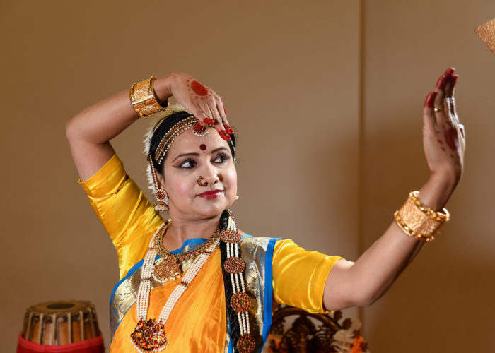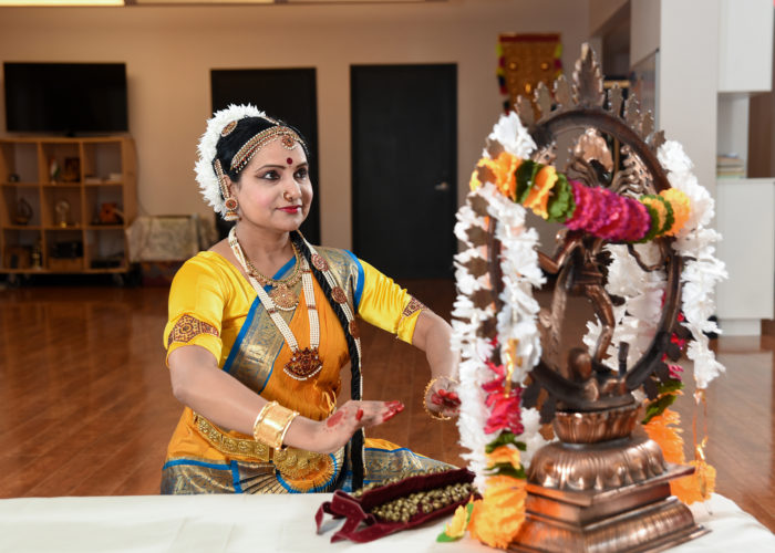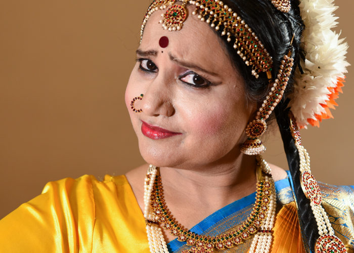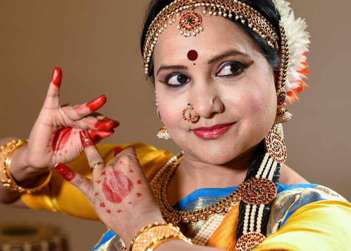 I practice Bharathanatyam, one of the most cherished and most popular classical Indian dance forms. It is considered to be the epitome of Indian cultural expression. Bharathanatyam has many dimensions. It includes body movements, facial expressions, hand gestures, footwork, costumes, music, repertoire, and specific themes for performances. Because Bharathanatyam is so well developed, all of these aspects of the art have been codified and are documented in ancient scriptures as well as recent books. Once limited to the temples of India, this art form is widely performed all over the world today.