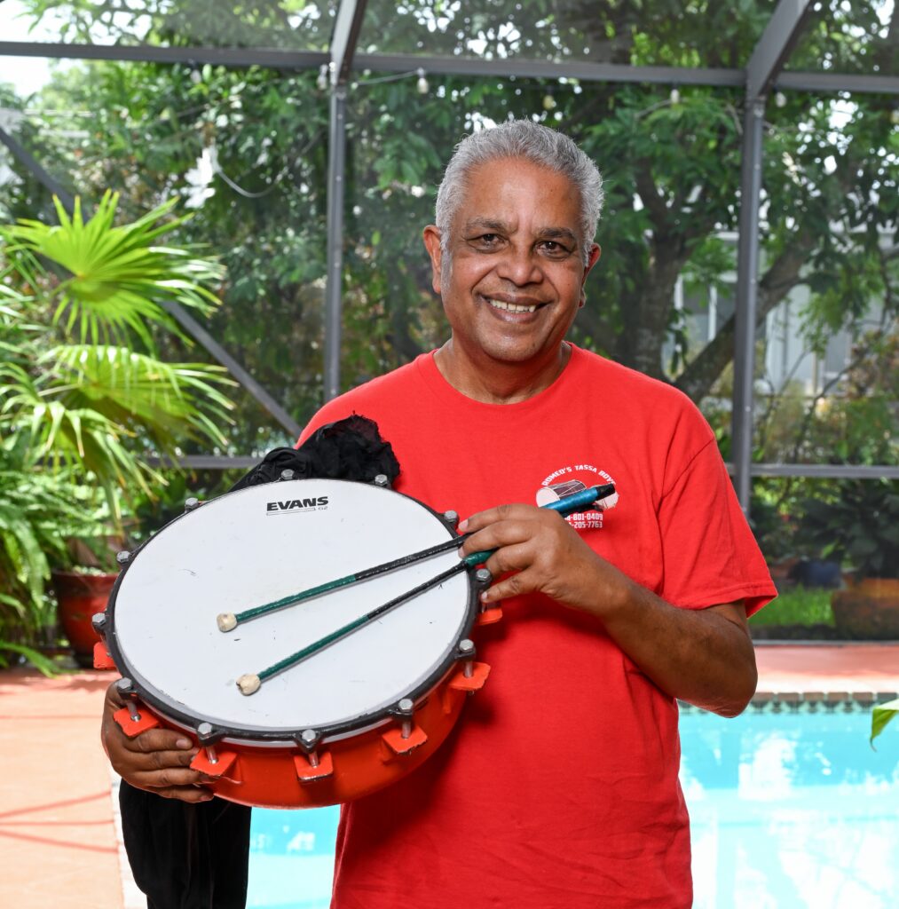 Born in Trinidad and Tobago, Romeo Ragbir is a master musician and instrument builder who specializes in the tassa drum. Tassa originated in South India and was revolutionized in the West Indies where it was infused with calypso beats. Romeo leads the South Florida tassa group, Romeo’s Tassa Kids, and performs at Indo-Caribbean Hindu weddings and other cultural events and ceremonies in the community. His ancestors brought the tassa tradition from India to Trinidad, and Romeo learned from his father how to make and play these drums. He has passed these skills on to his children and grandchildren as well as many students all over Florida. For over thirty years, Romeo has dedicated himself to preserving and sharing this tradition and was recognized for his expertise in 2009 with the Florida Folk Heritage Award.